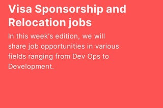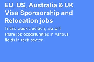 In this week's edition, we will share job opportunities in various fields in tech sector from Europe, UAE and UK which offer Visa Sponsorship and…